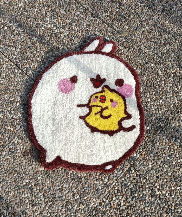 Tapis molang fait main avec la technique du tufting. Dimensions 55/43cm Laine et colle acrylique