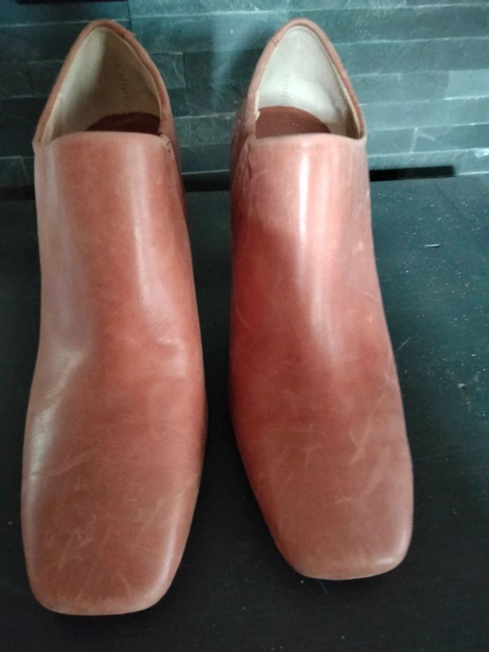 Bottines basses cuir vieilli talon 8 cm comme neuves - photo numéro 3