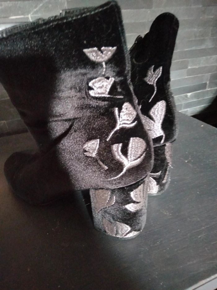 Bottines velours noir et broderies argentées - photo numéro 3