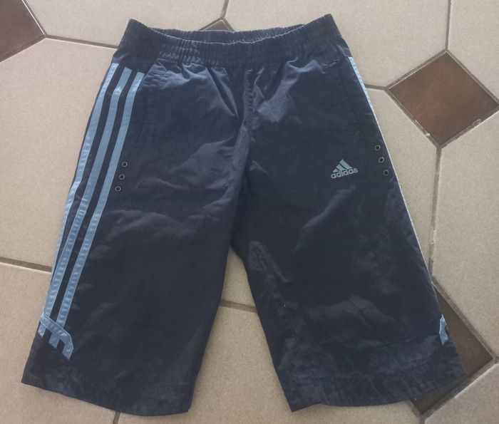 Bermuda en bon état ⚠️ 1 accro derrière au niveau des fesses( voir 3 ème photo) 65% polyester/ 35% coton Couleur : bleu marine/bleu clair Taille 6 ans