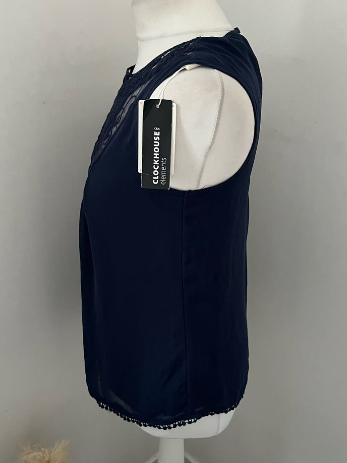 Vends jolie blouse sans manche Clockhouse Neuve avec étiquette Marine avec jolie dentelle Taille 36
