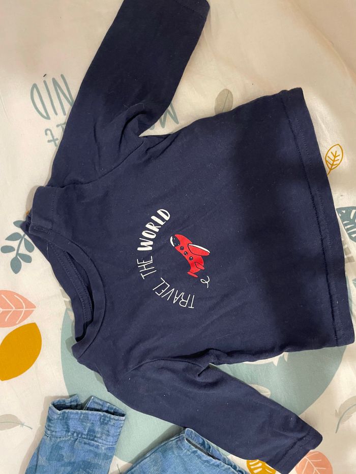 Lot gilet en jean avec deux pull coton - photo numéro 2