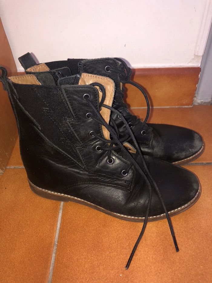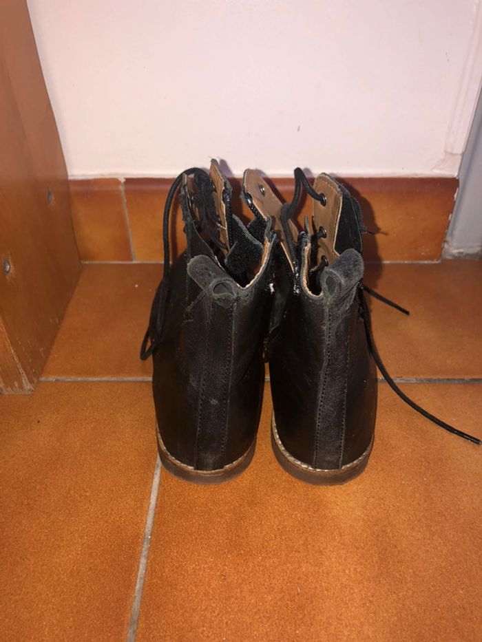 Bottines noires « Verbaudet » entre le bon état général et le très bon état. Présente sur le devant des traces d’usure qui donnent un aspect patiné au cuir. Cuir de très bonne qualité. Taille 33 Valeur : 54,90 Peut se porter avec jupe, robe, jean, short etc. Donnez une seconde vie à ces bottines. Fermeture zip sur le côté et lacet sur le devant donc idéal si vous avez une fillette qui a un peu de mal à mettre ses chaussures comme la mienne. Si vous souhaitez plus de photos ou d’infos, n’hésitez pas à me demander. #maelea1chaussuresfille