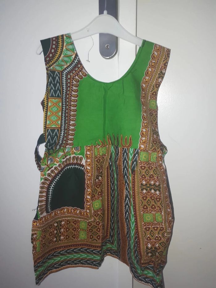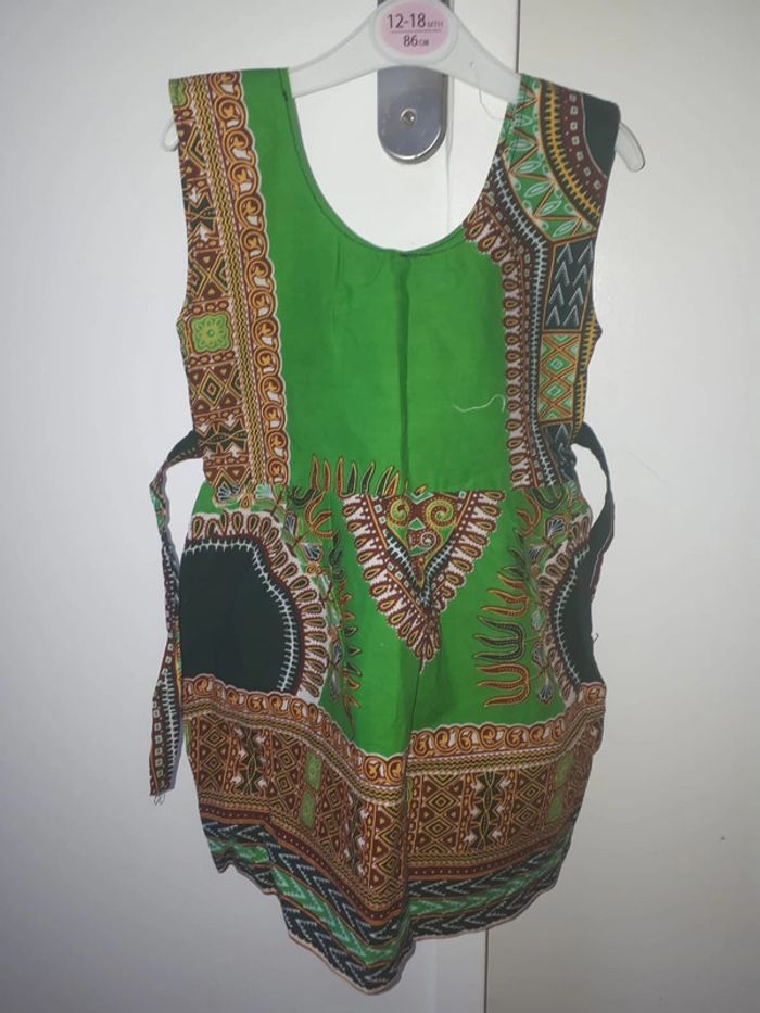 Robe en wax vert sans manches en excellent état. Porté 1 fois. Fermeture zip au dos. Taille 1 an Longueur totale : 52cm Si vous souhaitez plus de photos ou d’infos, n’hésitez pas à me demander. #maelea1robeenwaxfille