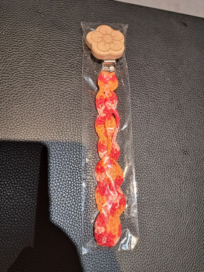 Attache tetine au crochet fait main Taille 30cm Tête en bois