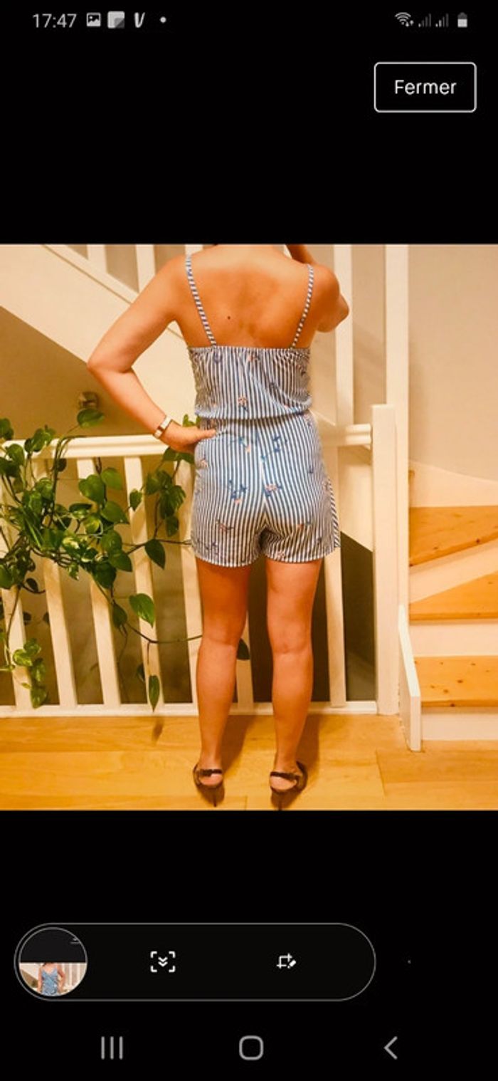 Combi short légère Infroissable,parfaite pour prendre dans la valise pour les vacances En soirée ou en journée,parfaite pour les températures actuelles Motif fleuri avec rayures,matière un peu élastique et agréable a porter
