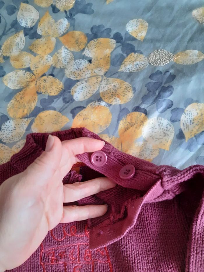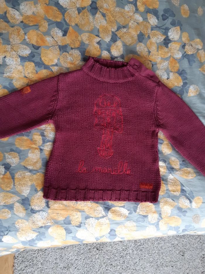 Pull chaud 3 ans Orchestra avec coll a bouttons La couleur est plus proche du prune que du rouge