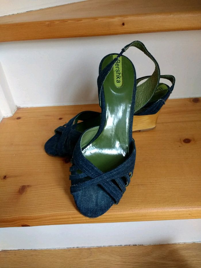 Sandales compensées Bershka Taille 36 Elles sont en jean, très original Portés 2 fois Comfortables, facile a assortir