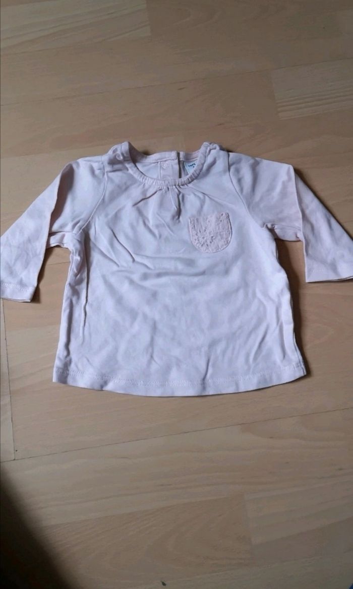T-shirt rose pale, en excellent état. 3 mois