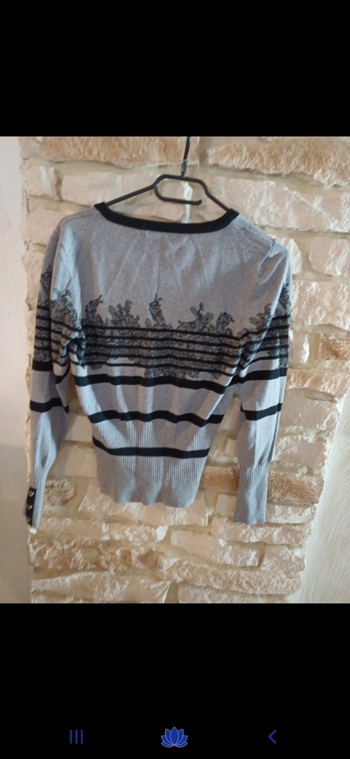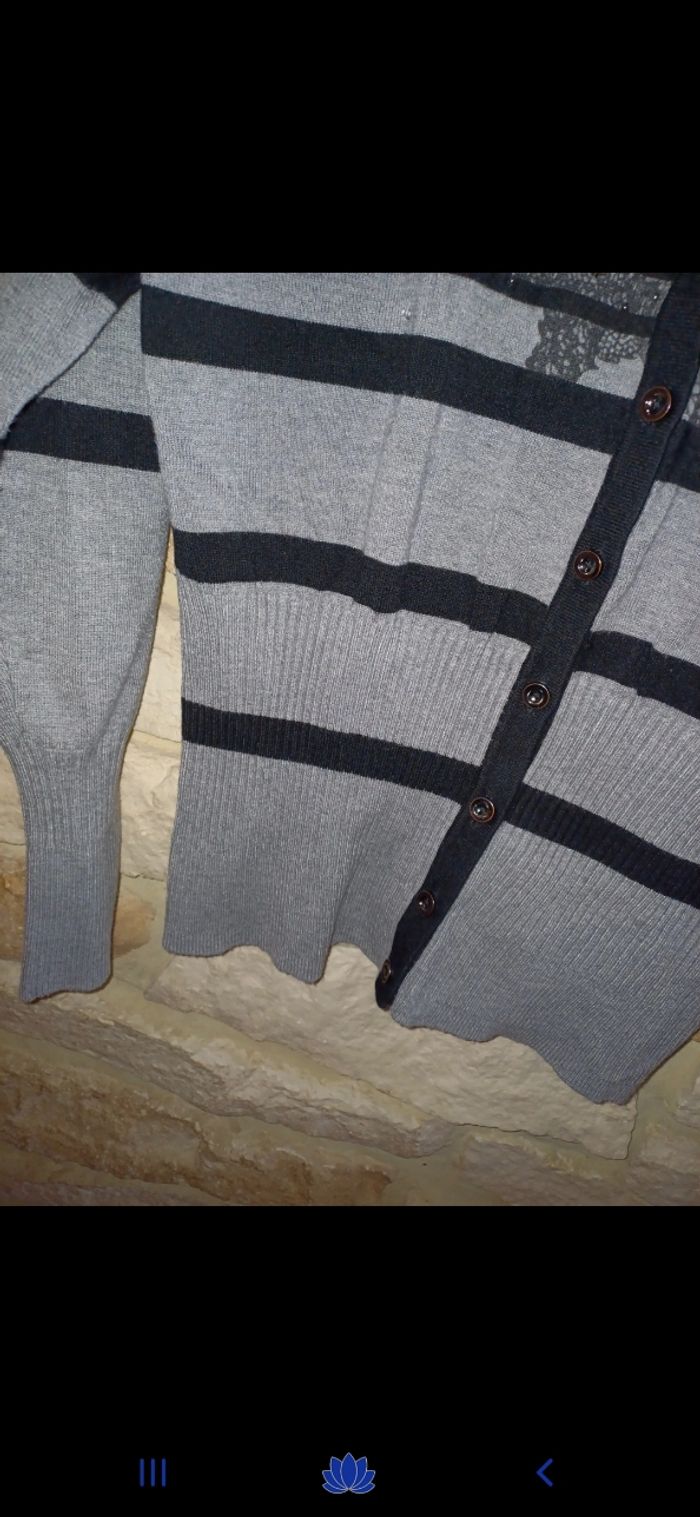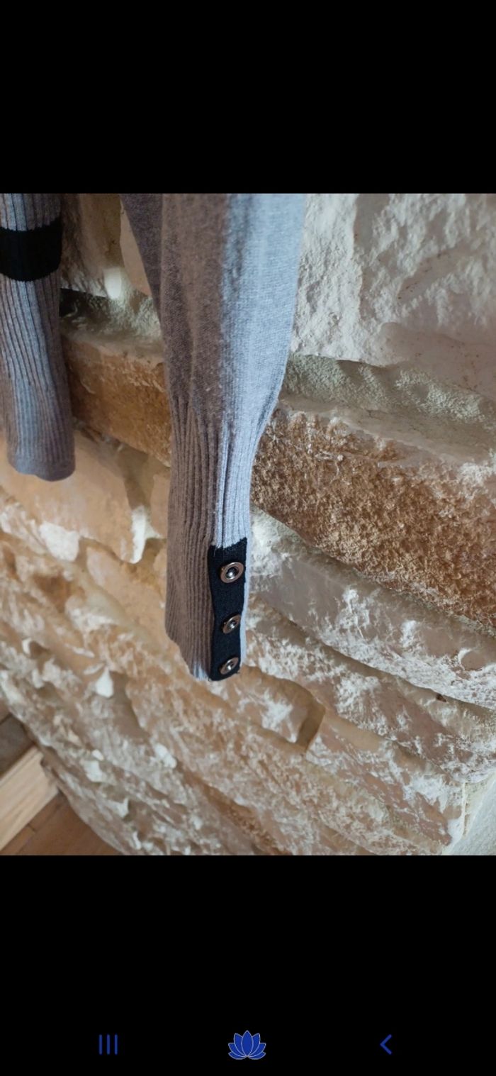 Joli pull fin boutonné à l avant qui se resserre au niveau de la taille. Boutons au niveau des poignets. Très légèrement bouloché. Noté taille 3 mais taille petit