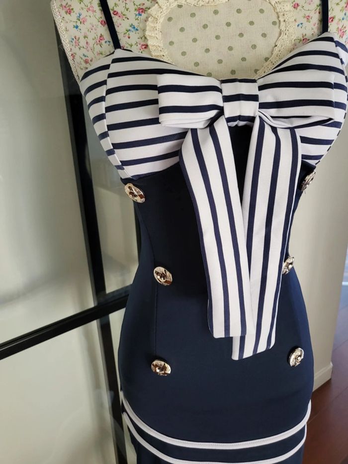Robe bleu et blanc style retro Taille unique mais correspond plus à un s Très bon état #nina25500TailleS