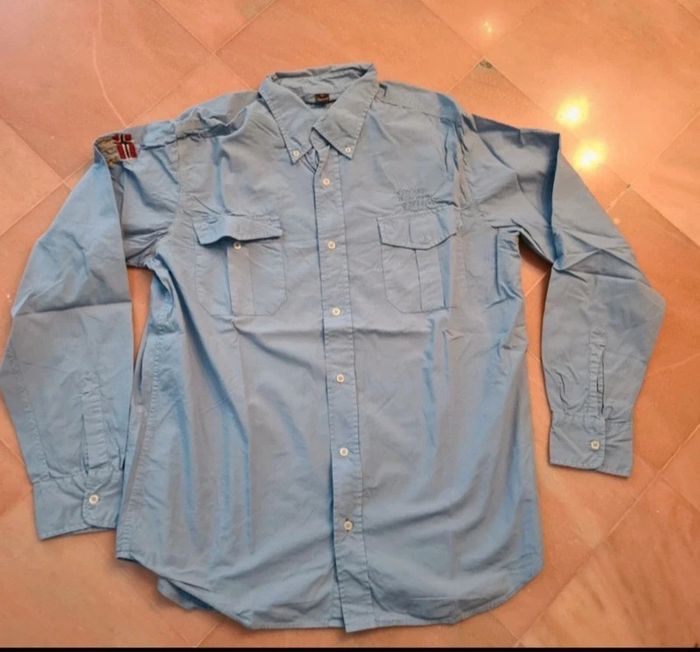 Chemise homme manches longues Marque Napapijri Taille XL Très bon état Couleur bleu ciel