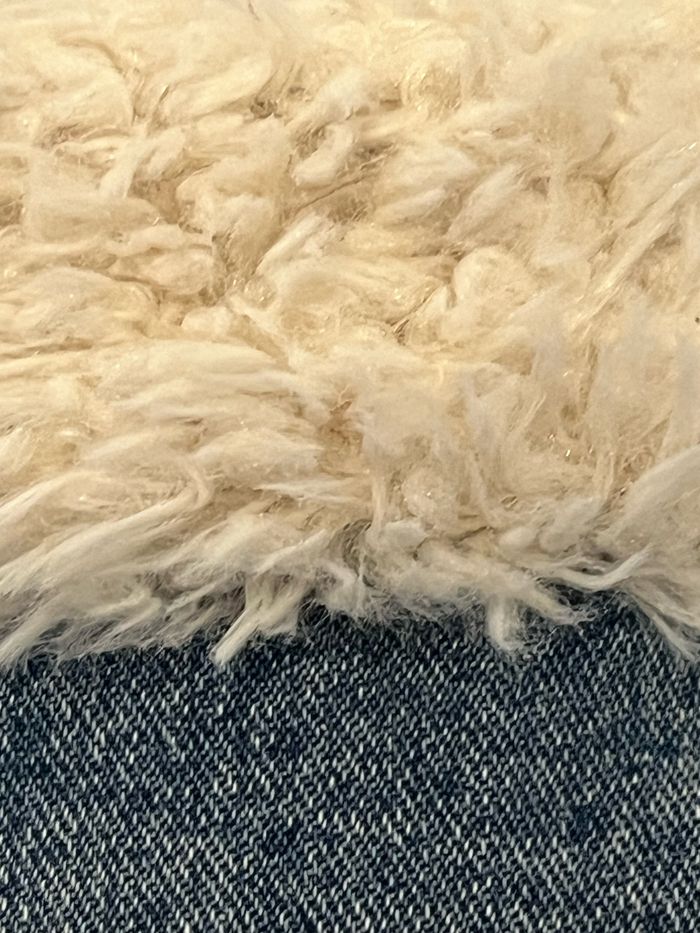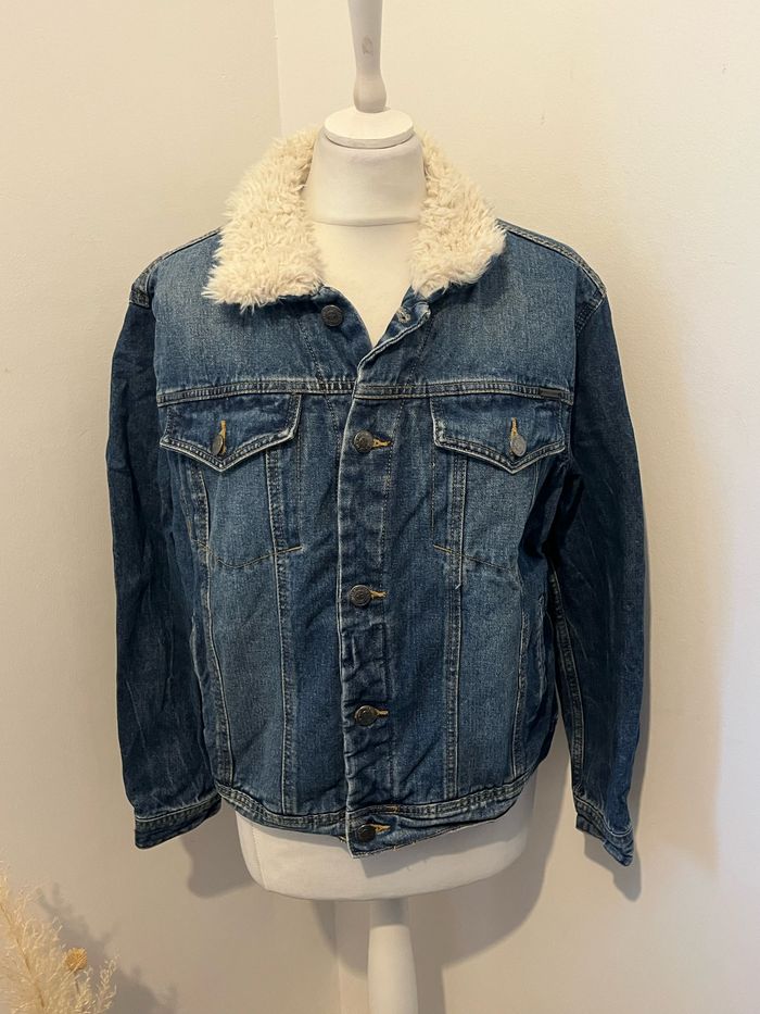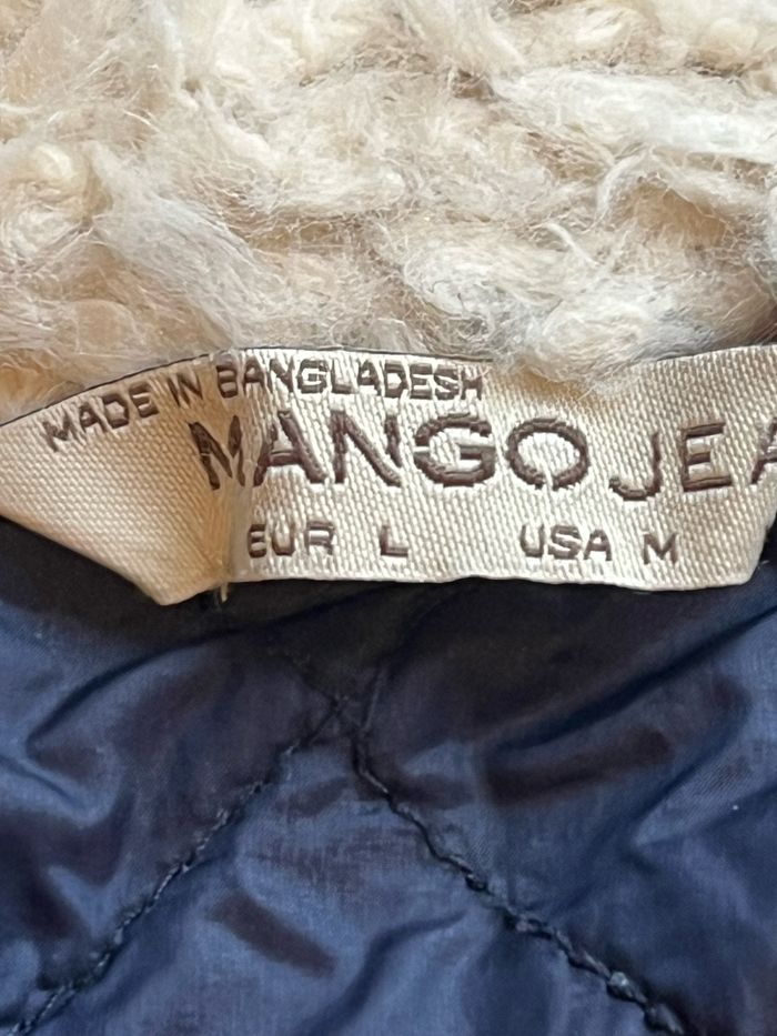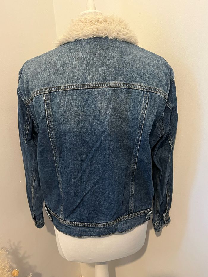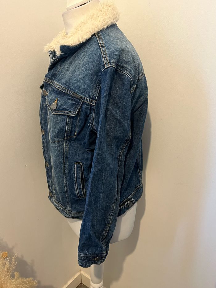 Vends jolie veste en jean Bleue moltonee Fausse fourrure écrue Mango Taille L