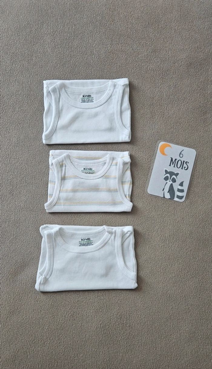 🛍 Article : Lot de bodies 🔝 État : Neuf sans étiquette 📏 Taille : 6 mois 🌈 Couleur : Blanc 🏷 Marque : Kiabi