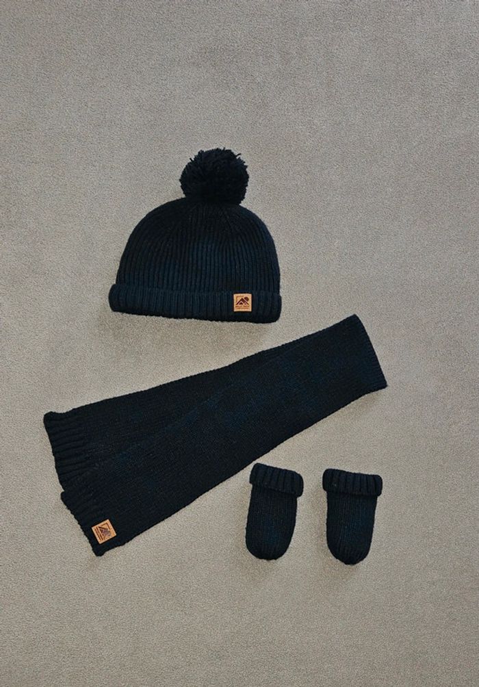 🛍 Article : Bonnet + Écharpe + Moufles 🔝 État : Neuf sans étiquette 📏 Taille : 45 🌈 Couleur : Bleu Marine 🏷 Marque : Kiabi