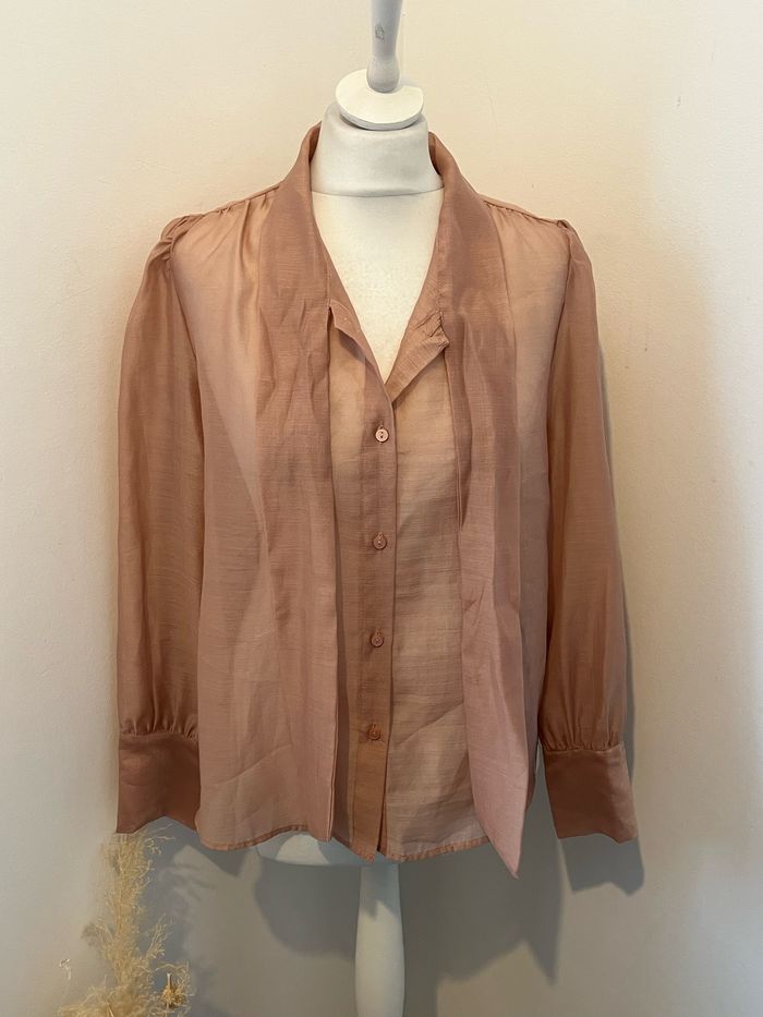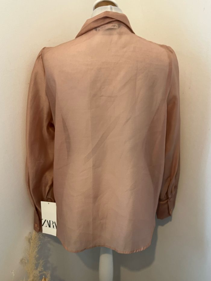 Vends jolie chemise Rose transparente Col cravate Zara Neuve avec étiquette Taille M