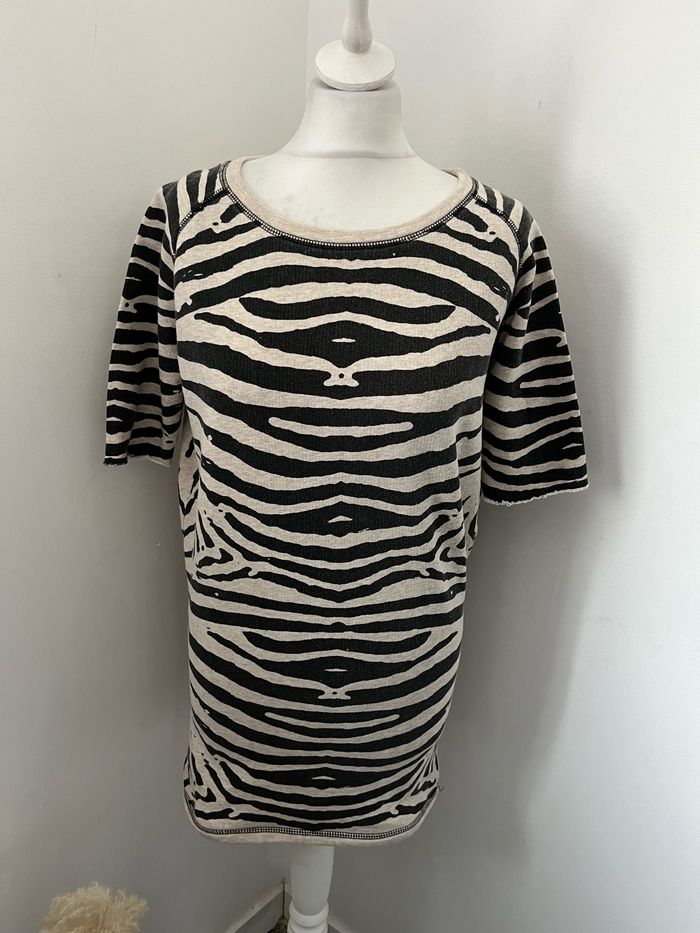 Vends joli sweat long Motif zèbre beige et noir Maje Taille 1 sur l’étiquette