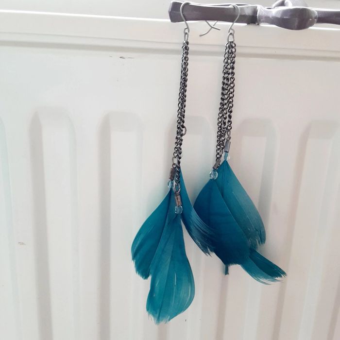 Boucles d'oreilles plumes turquoises - photo numéro 1