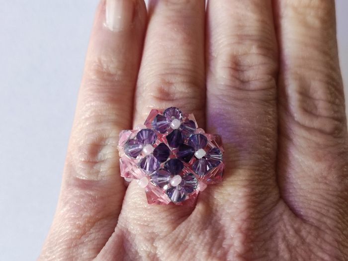 Fait main Diamètre approximative de la bague : 20 mm Périmètre du doigt sur lequel a été essayé la bague : 60 mm Rendez-vous possible sur Collégien (77090) ou Coulommiers (77120)
