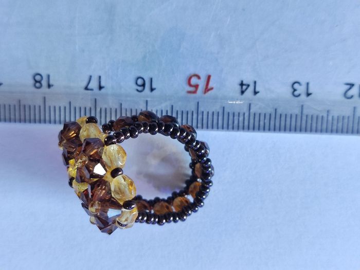 Fait main Diamètre approximative de la bague : 20 mm Périmètre du doigt sur lequel a été essayé la bague : 60 mm Rendez-vous possible sur Collégien (77090) ou Coulommiers (77120)