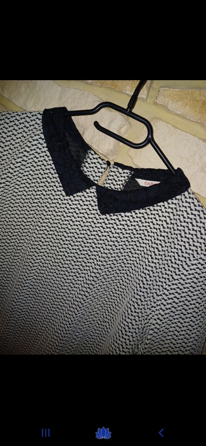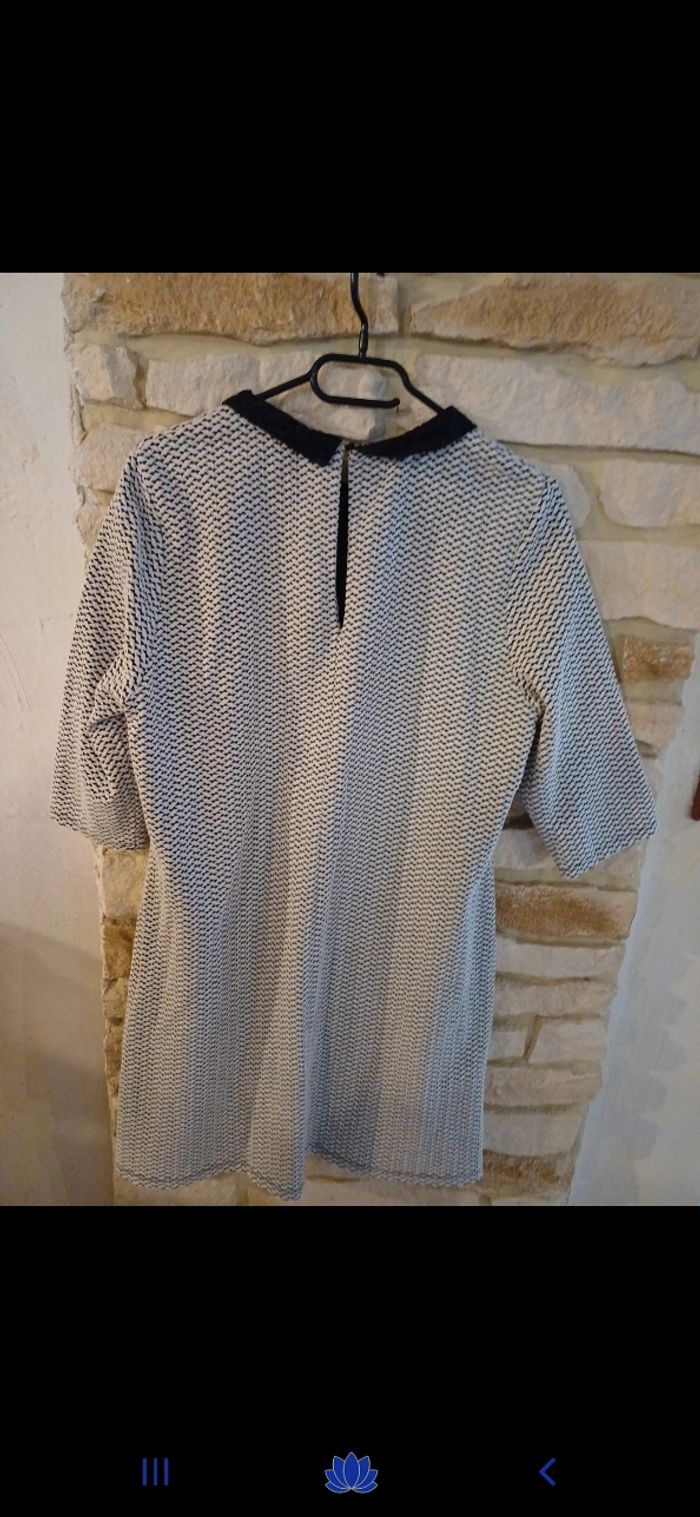 Robe manches 3/4, petit col, bouton à l arrière. Longueur: 92 cm environ