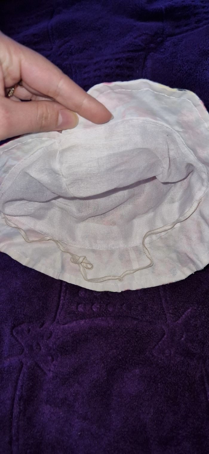 Chapeau pour fille Pas de taille mais ça doit être à peu près 3 ans Il y a une ficelle un peu lâche qui peut être enlevée si besoin