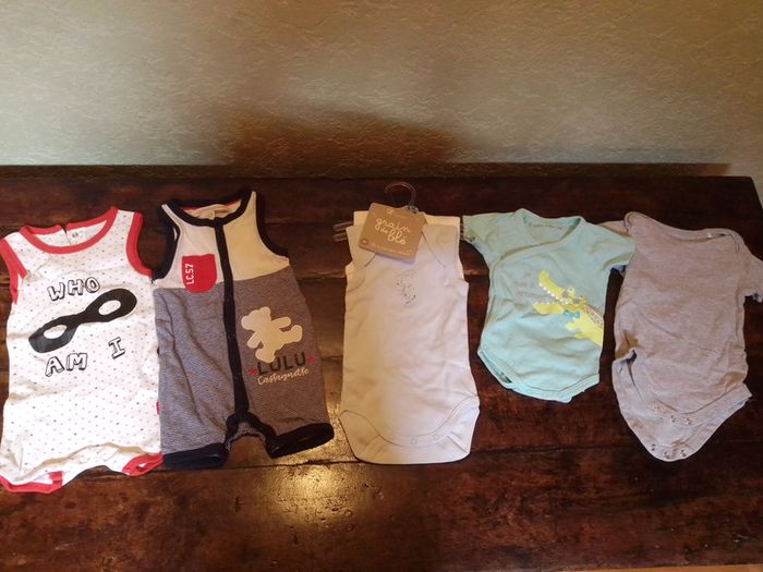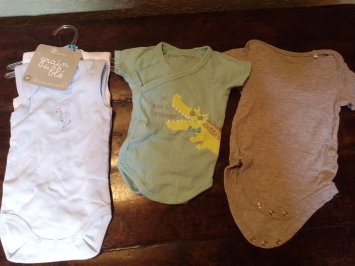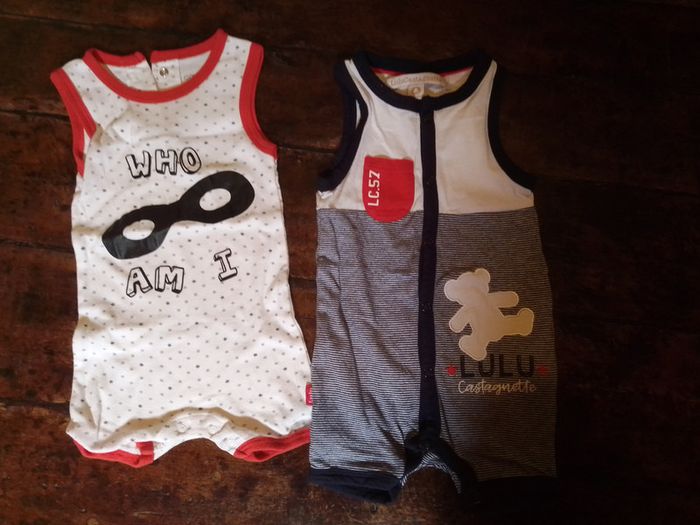 Lot de 4 bodies manches courtes Gémo et grain de blé 2 barboteuses Lulu castagnette et kitchoun