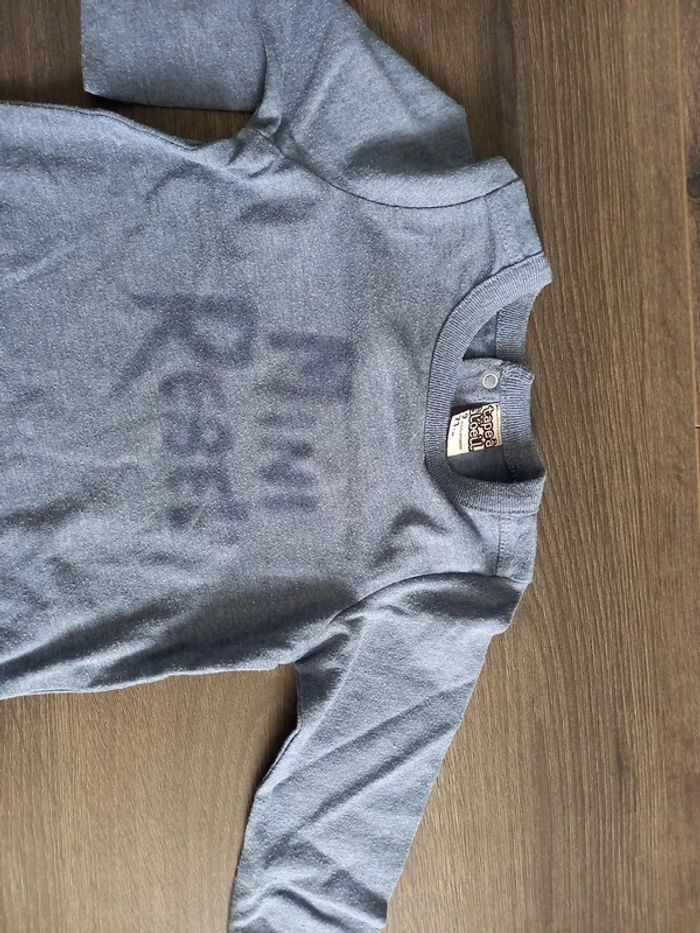Tee shirt manches longues Bleu gris Motif mini rebel TAO 9mois Très bon état