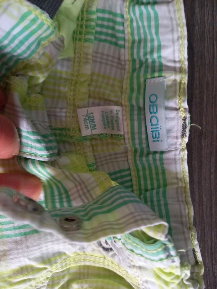 Short à carreaux Blanc et vert Obaibi 12mois Taille ajustable Très bon état