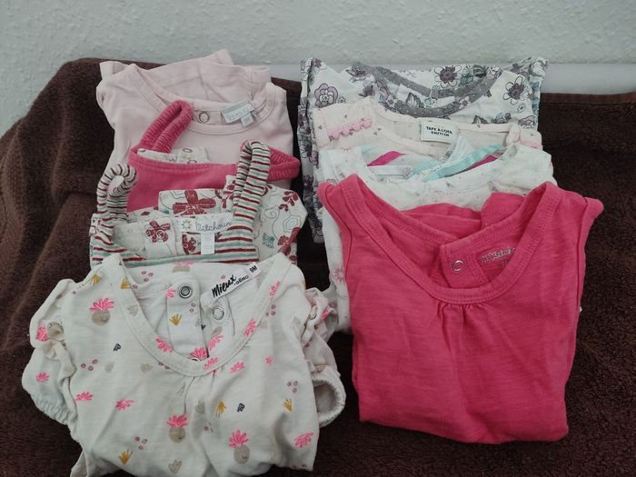 Un ensemble de petits hauts pour fille, en 9mois. Il contient : - 2 robes courtes - 4 hauts manches longues - 1 haut sans manche - 1 combishort Tout est lavé et désinfecté, maison non fumeur avec un chien.