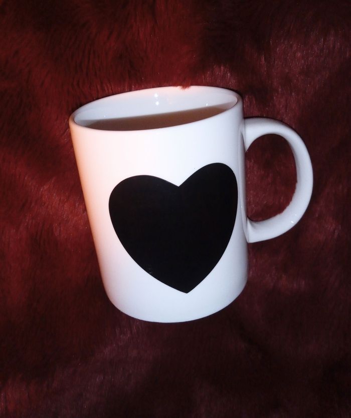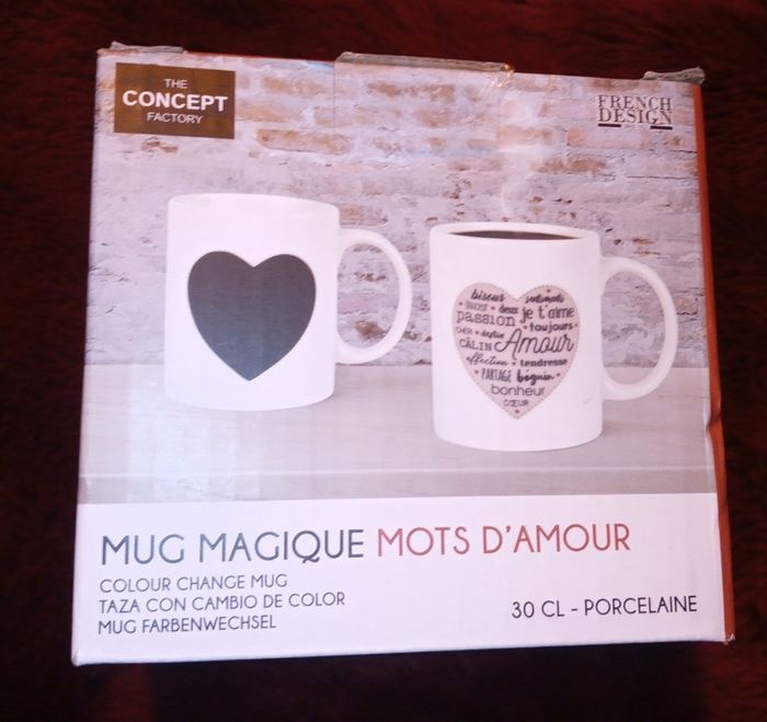 Tasse en porcelaine 30 cl Des mots d'amour apparaîssent a l'emplacement du cœur noir  idéal pour un cadeau