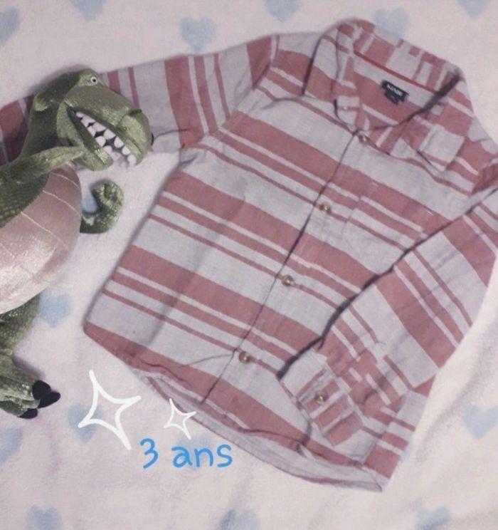Belle chemise bordeau et grise parfaite pour les saison plus fraîche car tissus épais Manches longues Taille 3 ans Très peu porté En parfait état