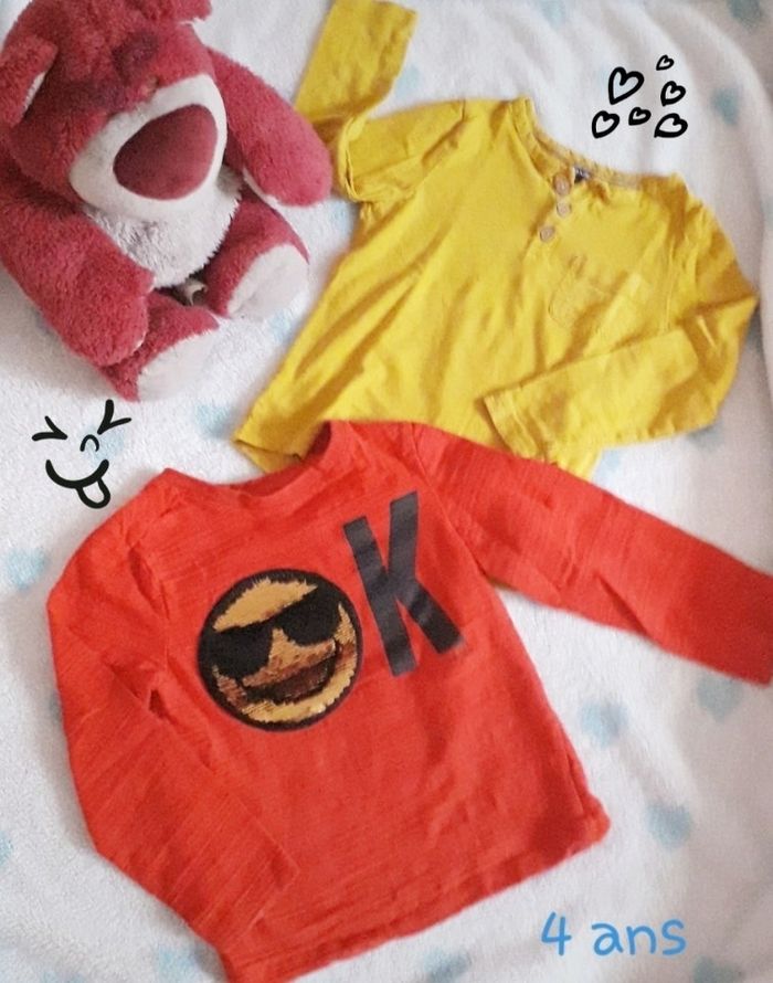 Très beau lot de 2 hauts manches longues Un rouge Smiley à sequins Et un jaune tunisien Parfait état