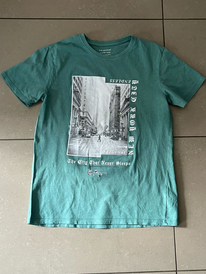 Vends joli t-shirt Vert avec imprimé New York Taille 11- 12 ans Primark Très bon état sauf un petit trou derrière