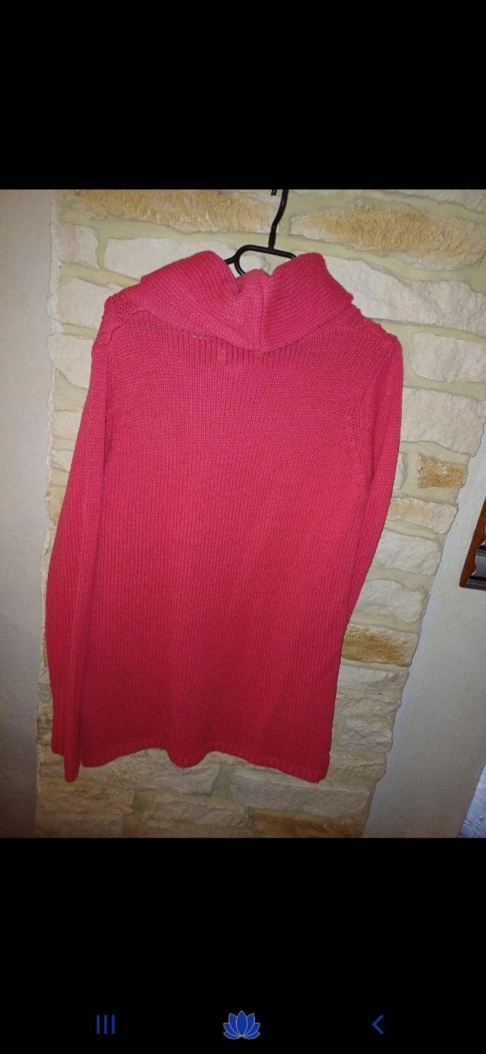 Joli pull long avec gros col. Malheureusement légèrement bouloché sur les manches et à l arrière