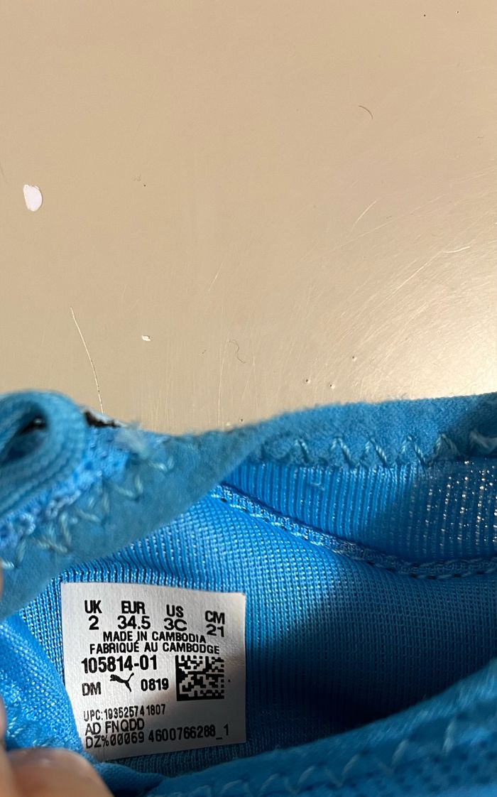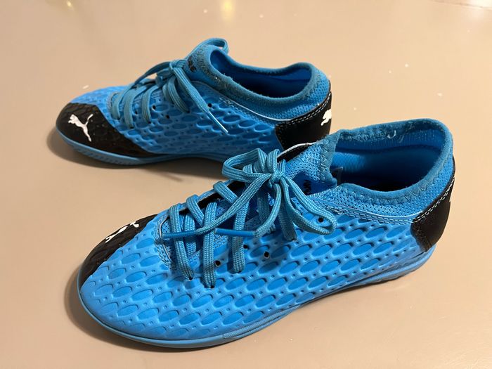 Modèle rare car il n’est plus commercialisé. Trés belle couleur bleue. Très bon état, très peu porté. Taille 34,5 Ça taille petit, peut aller à un enfant qui chausse du 33 #futsal #futsalpuma #foot #football