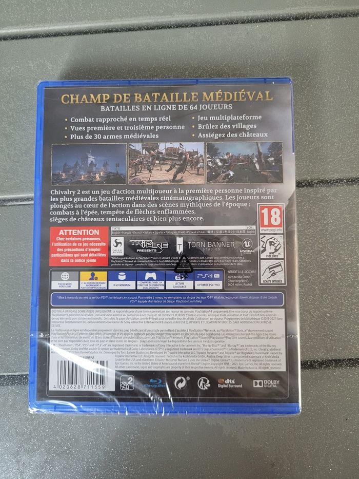 Chivalry 2 II Day one Neuf sous blister Version française Jeu PlayStation Ps4. Envoi rapide et soigné. Consultez mes autres annonces afin de compléter votre commande.