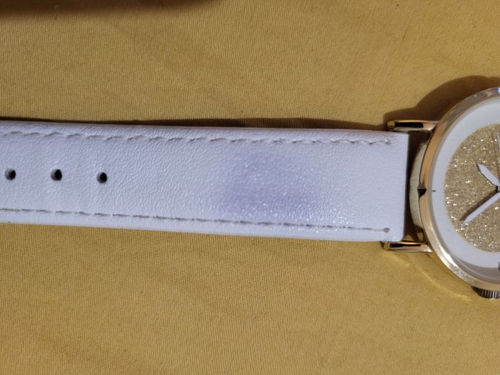 Montre Yves Rocher Bracelet blanc avec petite tache du au stockage (cf photos) (c'est peut être rien et cela peut peut-être partir en frottant, je ne sais pas du tout) Bracelet synthétique. Neuve jamais mise. Pas de pile.