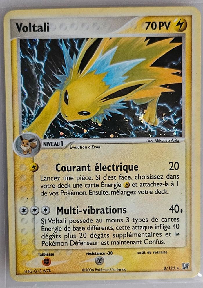 Je vends ma carte Voltali 8/115 de l'edition pokémon EX forces cachées de 2005 en très bon état, Foil (HOLO), quelques accros à l'arrière (cf photos). Possibilité de remise en main propre à Oullins au métro Oullins Centre pour économiser frais de port et frais de service. D'autres cartes disponible sur mon dressing.