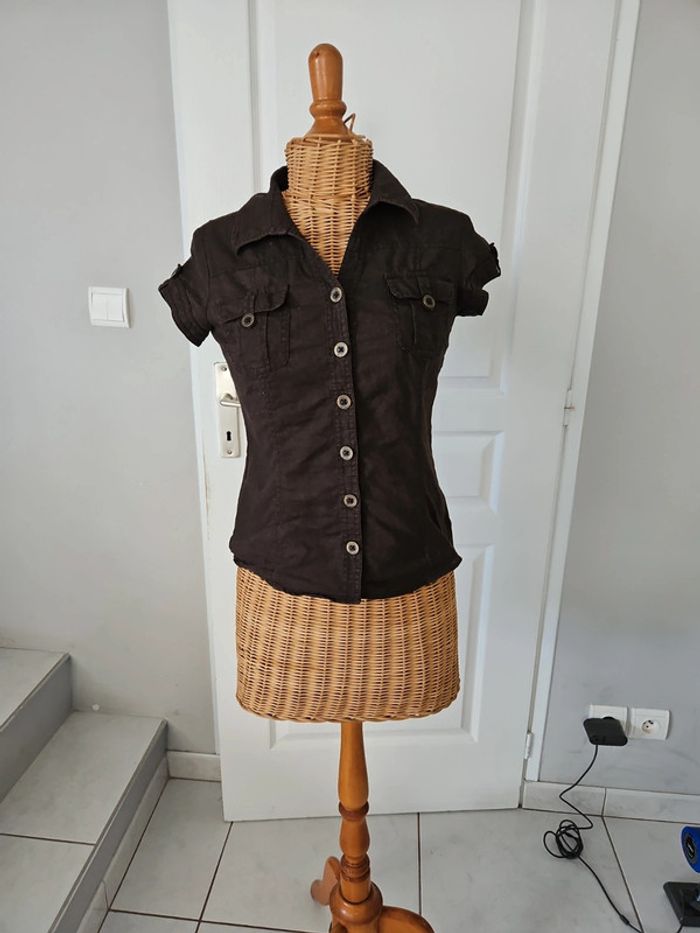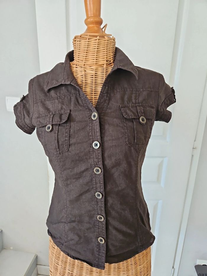 Chemisette manche courte femme marron Cache cache taille 1 55%lin 45% coton N'hésitez pas à aller voir mes autres ventes classées par #eloio #eloiofemme #eloiofemmes #eloiocachecache