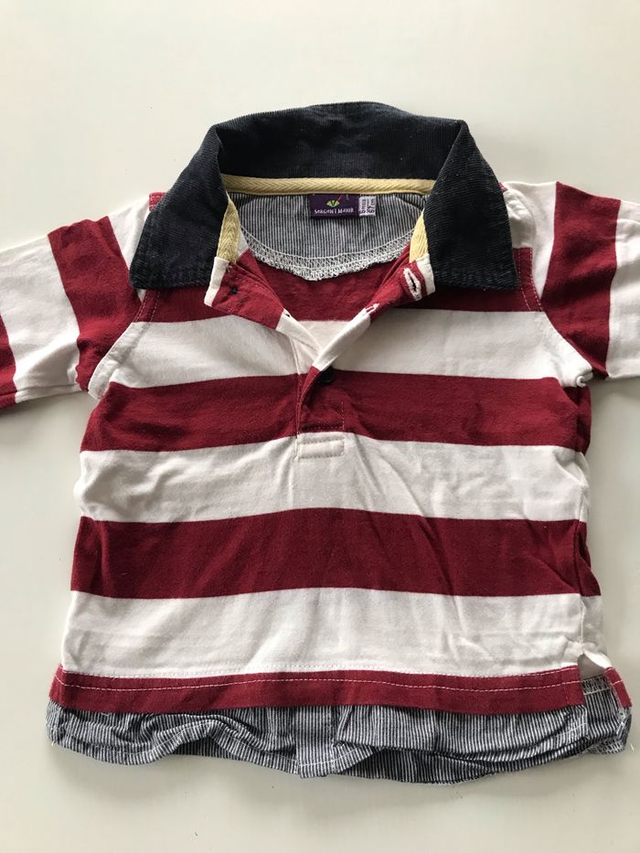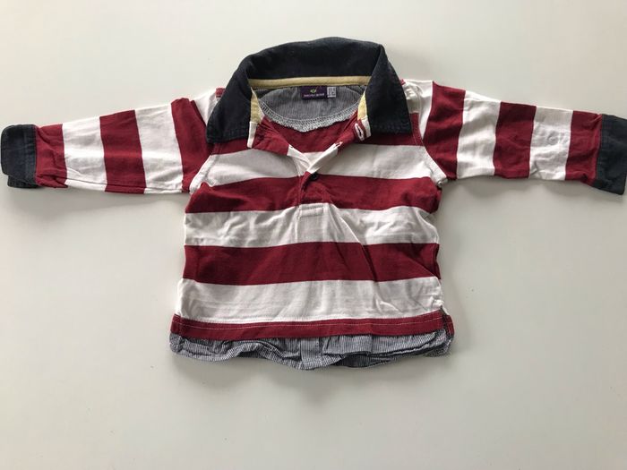 Polo bébé manches longues rayé bordeaux et blanc. 100% coron. Col marine velours. Marque Sergent Major. 6 mois