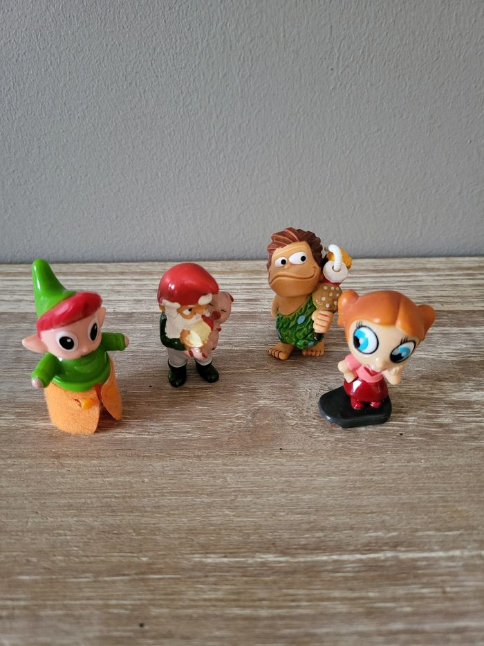 Lot comprenant : - 1 lutin de Noël, série de 2015 - 1 petite fille, série ça rigole à l'école de 2007 - 1 nain fermier, série Les nains au travail de 1992 - 1 homme de cro-magnon, série cromignon de 2003 D'autres figurines Kinder sont en vente dans mon dressing