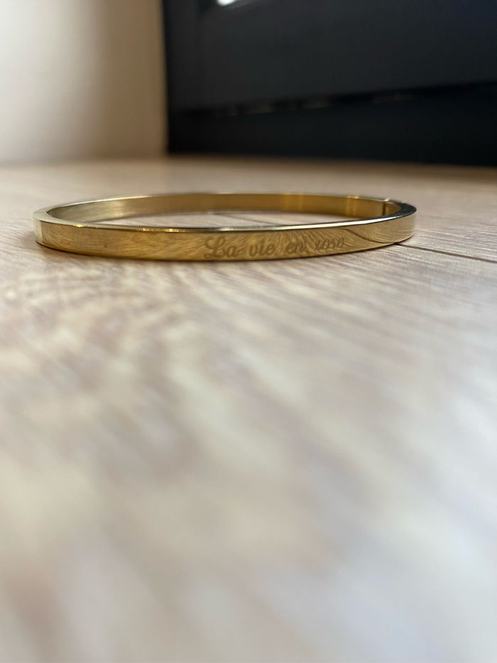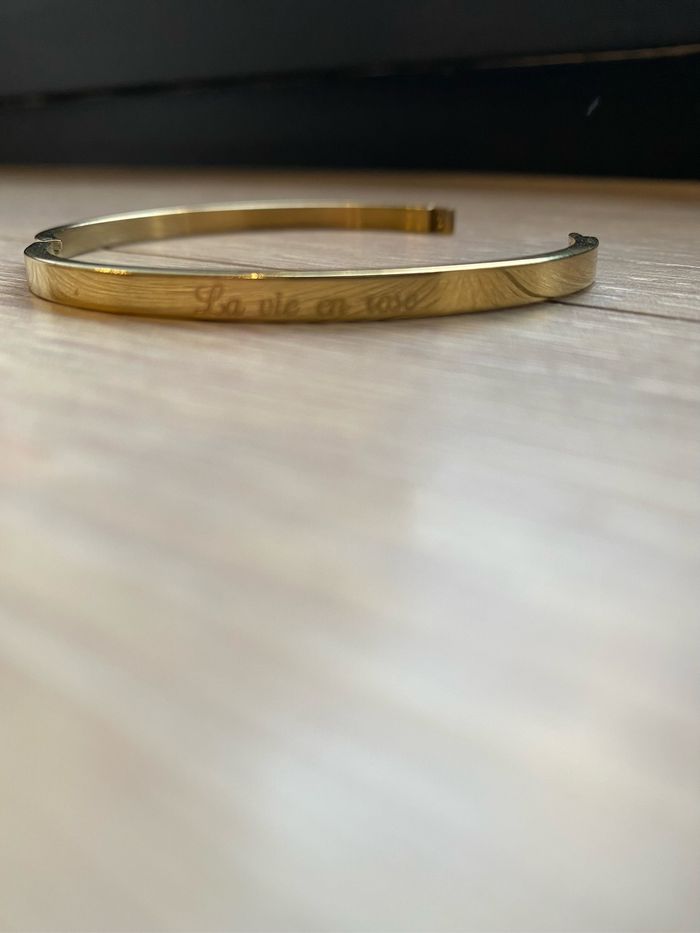 Bracelet Jonc Doré gravé La vie en rose très peu porté