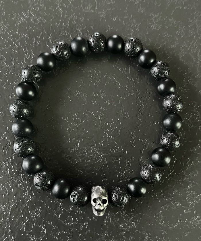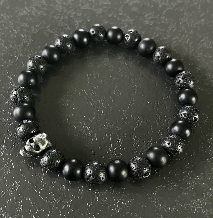 ✨ D E S C R I P T I O N ✨ 💎 Pierres utilisées : Pierre de lave et onyx noire. 📏 Taille des perles : 8 mm 💎 Élastique 3 cordes ce qui le rend solide, facile à enfiler et à retirer. 📏 Largeur du bracelet : Au choix, à convenir en message privé. 🇫🇷 Fabriqué en France Taille moyenne pour une femme : 15 cm Taille moyenne pour un homme : 18 cm ✨ P A C K A G I N G ✨ Chaque bijou est confectionné avec le plus grand soin en Bretagne. Tous les articles sont livrés dans une jolie pochette noire type velours. Un cadeau idéal pour toutes occasions, Saint-Valentin, fête des mères/pères, Noël, anniversaire ou simplement pour vous faire plaisir à vous :)