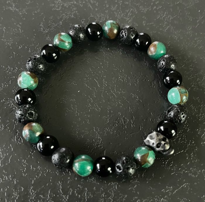Bracelet perles pierre naturelle Green Skull - photo numéro 1