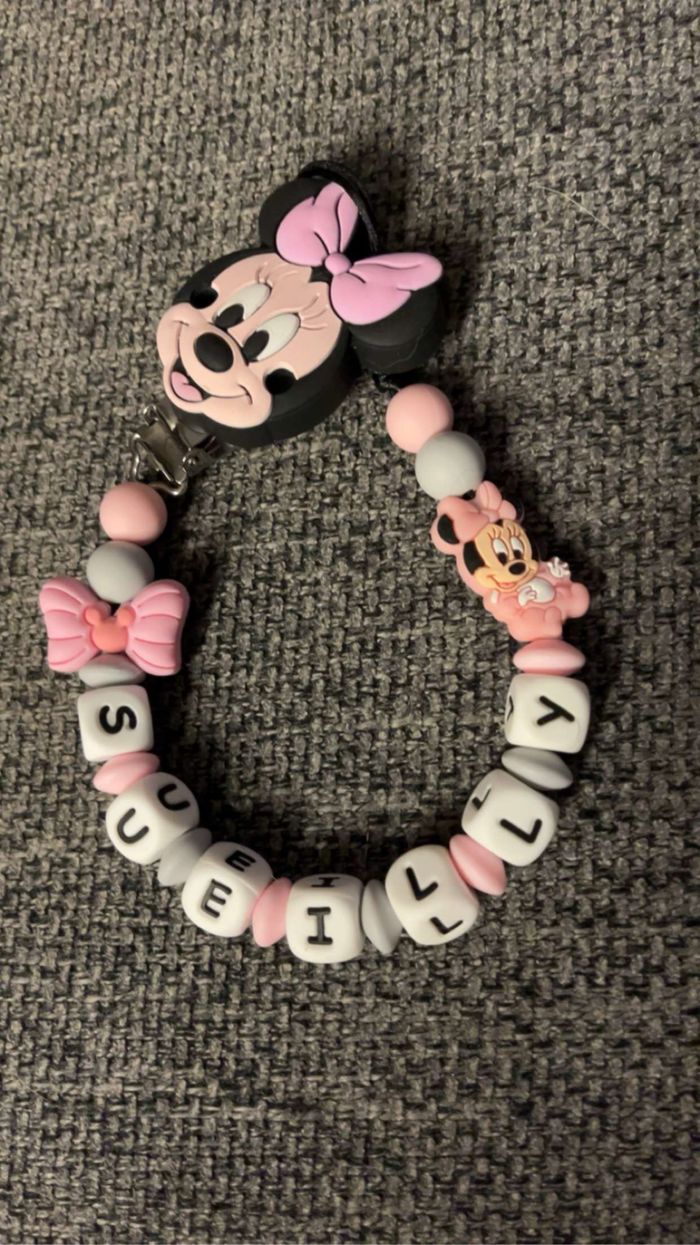 Attache tétine personnalisé en silicone ou en bois au souhait de l’acheteur . Personnalisable au choix de l’acheteur que ce soit la couleur comme le prénom ou le thème . Le fil est doublé pour plus de sécurité tout le long de l’attache tétine. N’hésitez pas à me demander et regarder mon dressing. Une photo vous sera envoyée avant l’expédition pour vous ayez un aperçu du rendu. Tous les produits sont réalisés avec du materiel spécial conçu aux bébés , enfants.