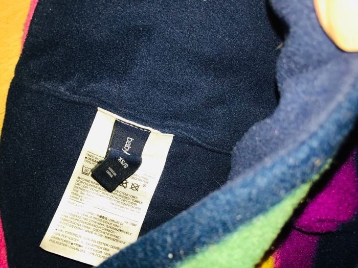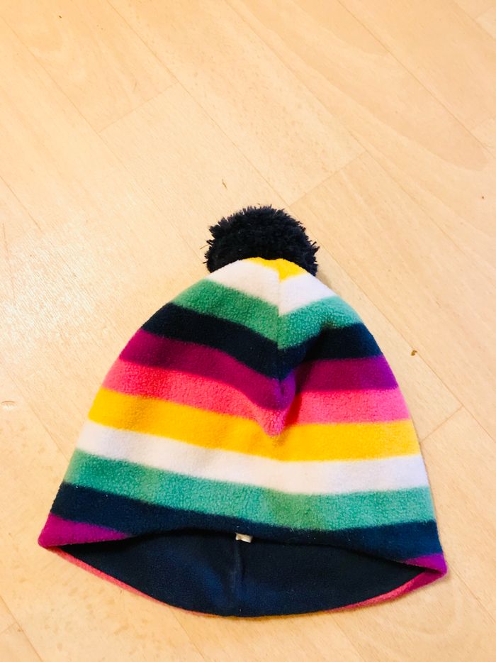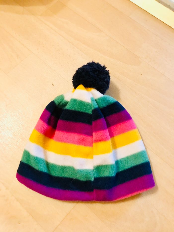 bonnet fille taille 46-48 cm ( correspond à 6/12 mois) GAP multicolore rayé avec pompom tout polaire : interieur et exterieur 100% polyester très bon état