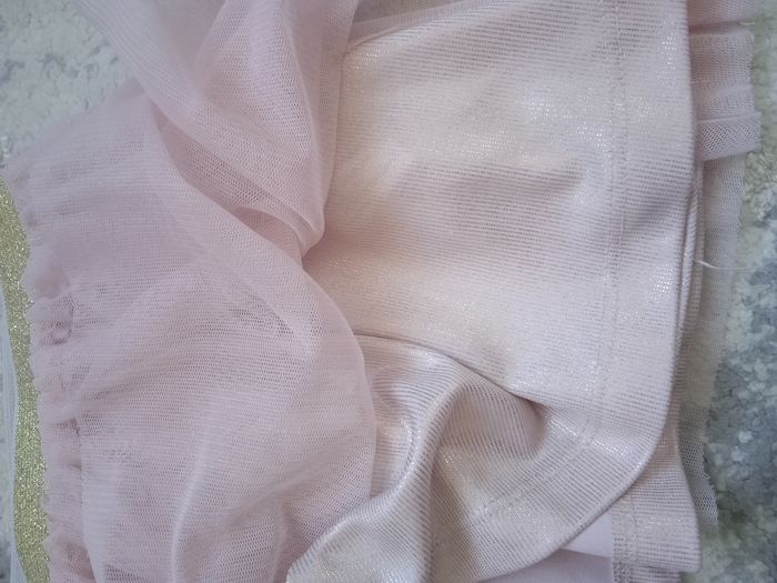Jupe en tulle rose avec élastique a la taille doré doublure rose pailleté taille 2 ans en très bon état. D'autre article de la même taille dans mon dressing