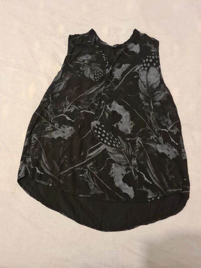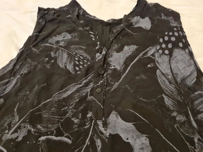 En très bon état. Léger. Taille M mais en l'absence d'étiquette, j'ai préféré mesurer. Mesures : 60 cm de long (avant) 70 cm de long (arrière) 53 cm de large au niveau des aisselles. Envoi rapide et soigné
