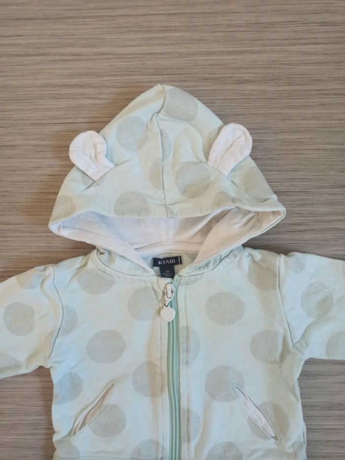 Veste à capuche Kiabi pour bébé fille 3 mois. N'hésitez pas à visiter mon dressing pour me proposer des lots ou économiser les frais de port 🙂